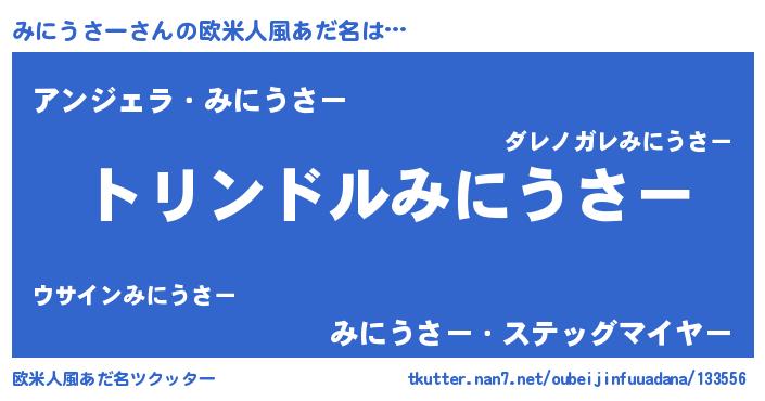 | 男性向けラノベタイトル風あだ名 | 『みにうさー~年齢イコール彼女いない歴の魔法使い~』 |