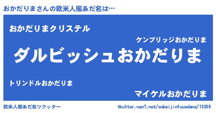| 男性向けラノベタイトル風あだ名 | 『おかだりまという概念が存在しない退屈な世界 』 |