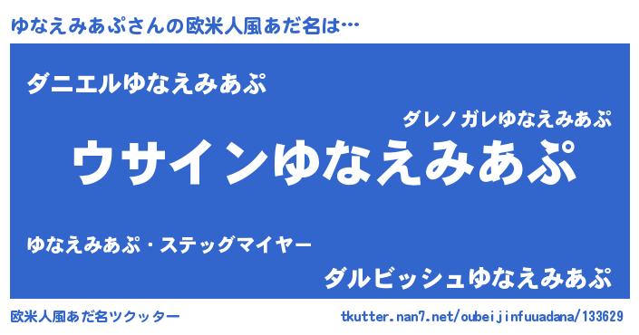 | 男性向けラノベタイトル風あだ名 | 『ゆなえみあぷの嫁は女の子じゃないと思った?』 |