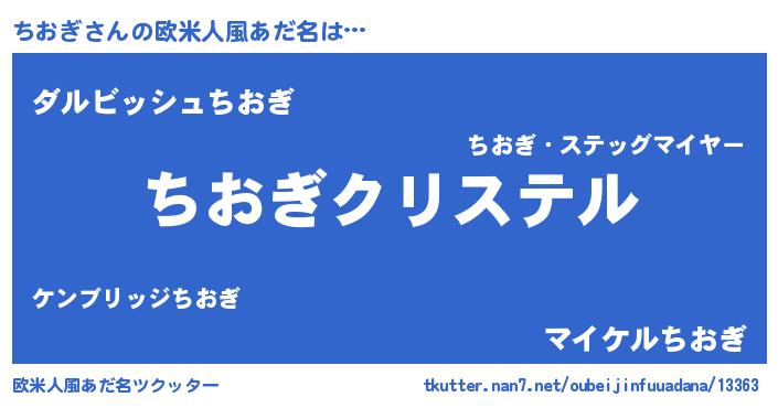 | 女子向けラノベタイトル風あだ名 | 『ちおぎ伯爵の花嫁』『ちおぎの契約王妃』 |