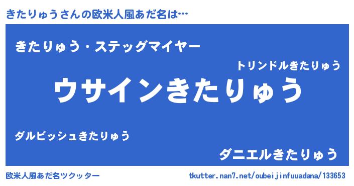 | 男性向けラノベタイトル風あだ名 | 『きたりゅうの嫁は女の子じゃないと思った?』 |