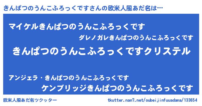 | ファンタジー風あだ名 | 『エターナルキンパツノウンコフロックデスー』 |