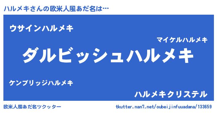 | 男性向けラノベタイトル風あだ名 | 『ハルメキという概念が存在しない退屈な世界 』 |