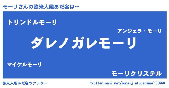| 意味不明あだ名 | 『住所不定無職モーリ(8歳)』『自称モーリ』 |