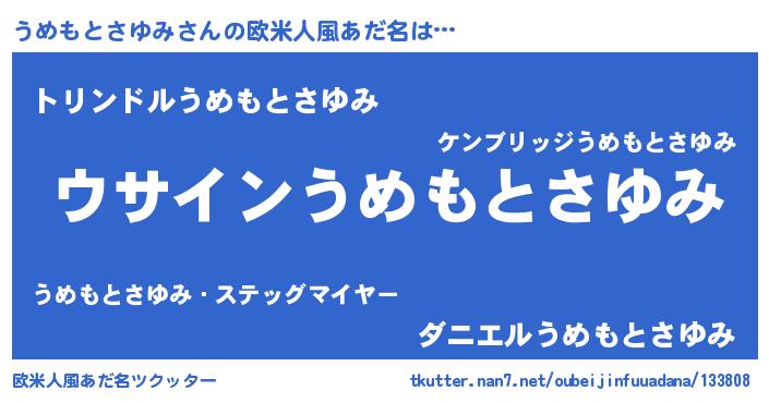 | 男性向けラノベタイトル風あだ名 | 『うめもとさゆみの嫁は女の子じゃないと思った?』 |