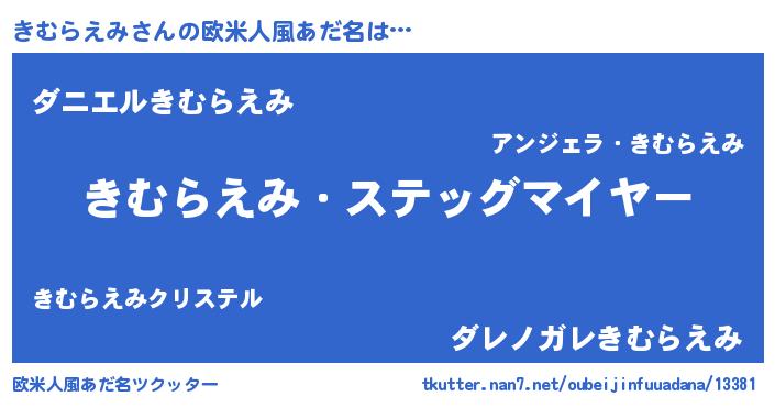 | 男性向けラノベタイトル風あだ名 | 『うちのきむらえみが世界を掌握している!』 |