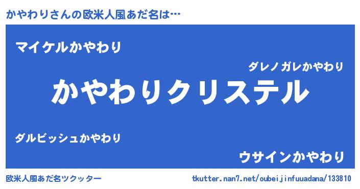 | ファンタジー風あだ名 | 『エターナルカヤワリー』『カヤフェル』 |