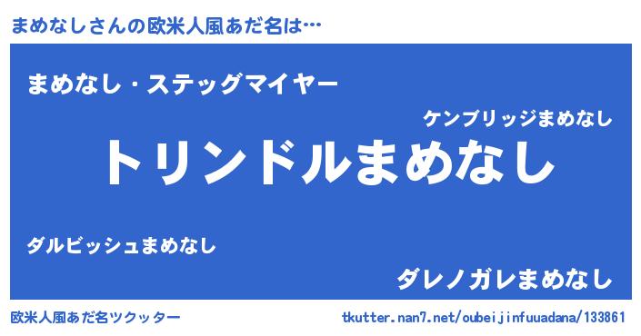 | 男性向けラノベタイトル風あだ名 | 『転生したらまめなしだった件』 |