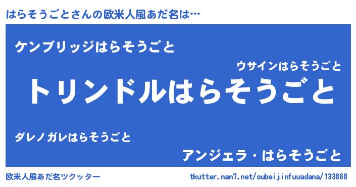 | 男性向けラノベタイトル風あだ名 | 『ハラソウゴトスレイヤー』 |
