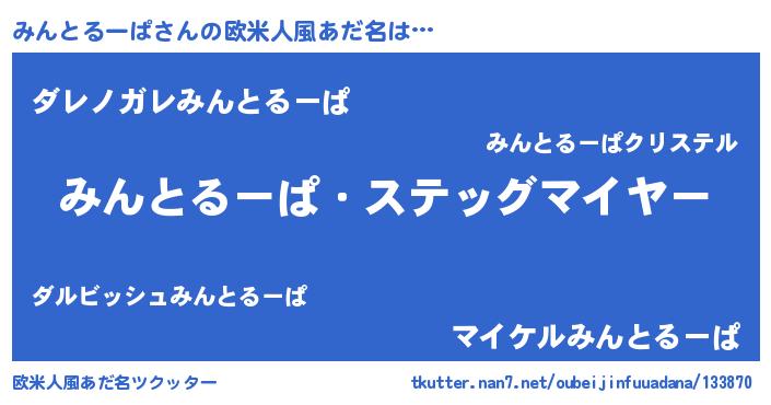 | 意味不明あだ名 | 『住所不定無職みんとるーぱ(41歳)』 |