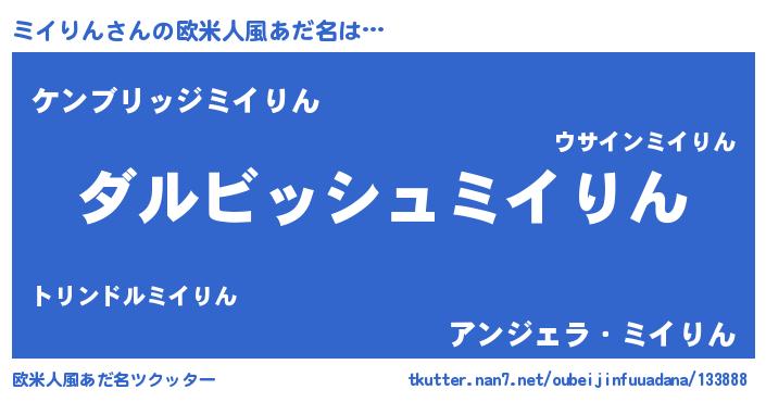 | 男性向けラノベタイトル風あだ名 | 『ミイりんという概念が存在しない退屈な世界 』 |