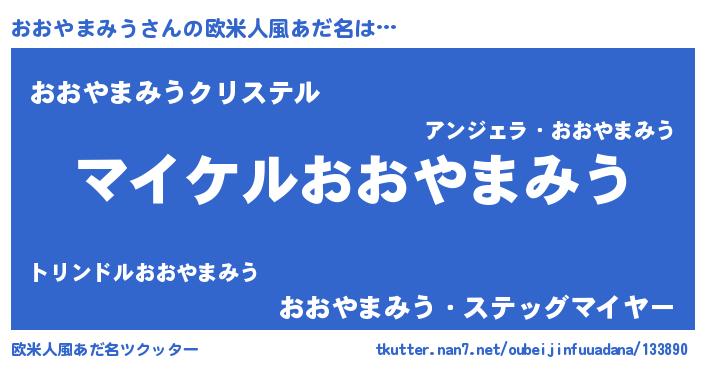 | 男性向けラノベタイトル風あだ名 | 『オオヤマミウアートオンライン』 |
