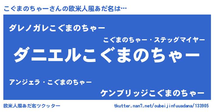 | 女子向けラノベタイトル風あだ名 | 『こぐまのちゃー夫妻のなれそめ』 |