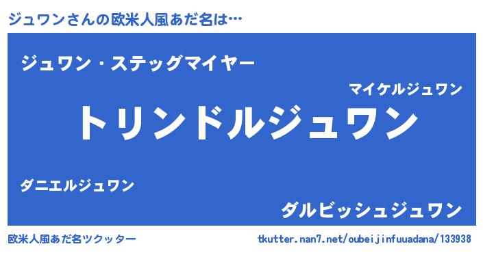 | 男性向けラノベタイトル風あだ名 | 『転生したらジュワンだった件』 |