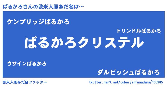 | 意味不明あだ名 | 『ばるかろフォーエバー』『自称ばるかろ』 |