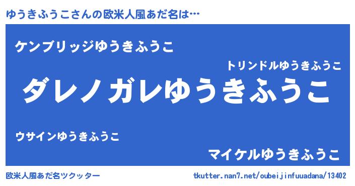 | 男性向けラノベタイトル風あだ名 | 『魔弾の王とゆうきふうこ』 |
