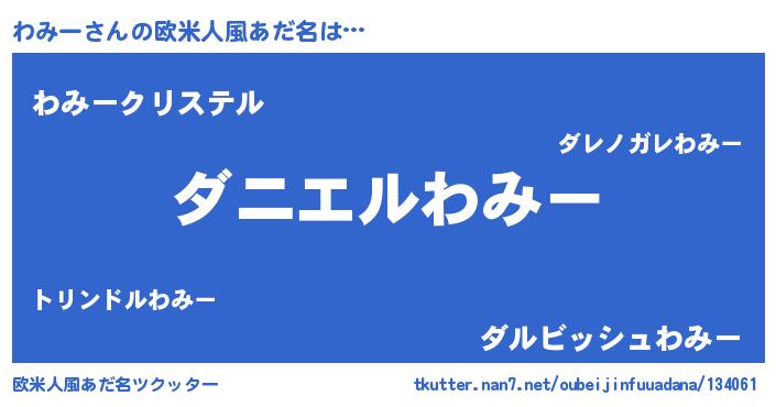 | 男性向けラノベタイトル風あだ名 | 『おまえをオタクにしてやるから、俺をわみーにしてくれ! 』 |