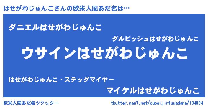 | 女子向けラノベタイトル風あだ名 | 『はせがわじゅんこの卵を拾いまして』 |