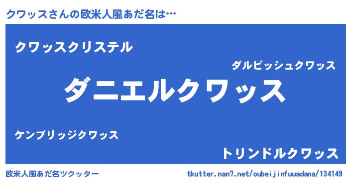 | ファンタジー風あだ名 | 『クインクット』『エターナルクワッスー』 |