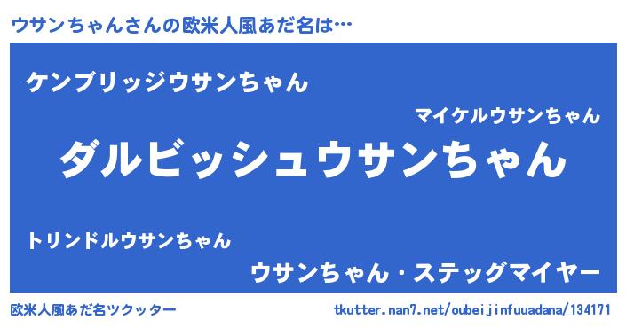 | 男性向けラノベタイトル風あだ名 | 『ウサンちゃんという概念が存在しない退屈な世界 』 |