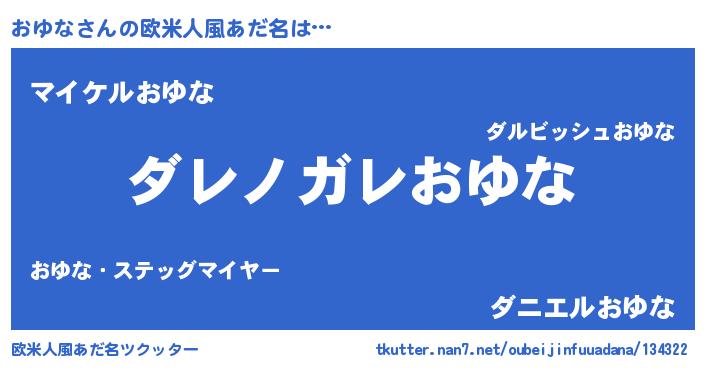 | 男性向けラノベタイトル風あだ名 | 『この素晴らしい世界におゆなを!』 |