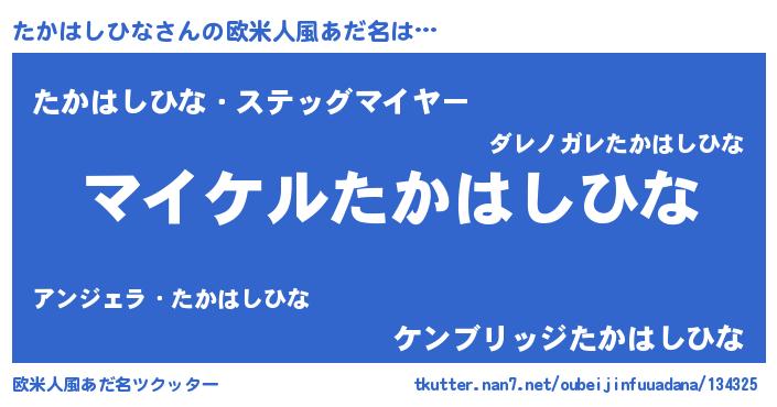 | 男性向けラノベタイトル風あだ名 | 『タカハシヒナアートオンライン』 |