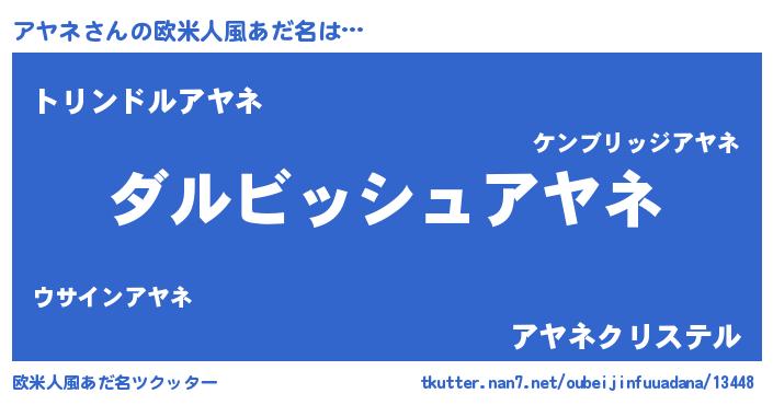 | 男性向けラノベタイトル風あだ名 | 『アヤネという概念が存在しない退屈な世界 』 |
