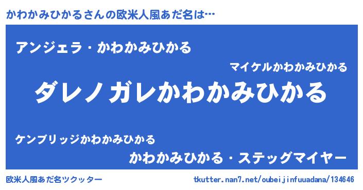 | 男性向けラノベタイトル風あだ名 | 『魔弾の王とかわかみひかる』 |