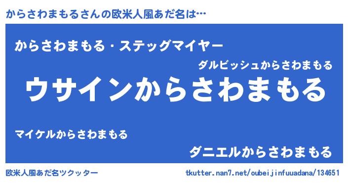 | 女子向けラノベタイトル風あだ名 | 『からさわまもるの卵を拾いまして』 |