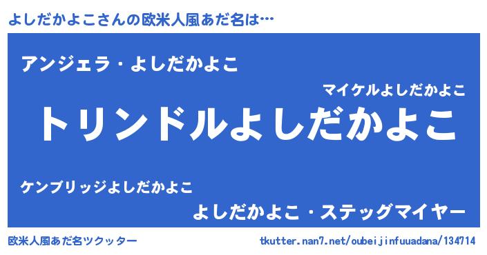 | ヘコむあだ名 | 『よしにー』『よしだかよこ(苦笑)』 |