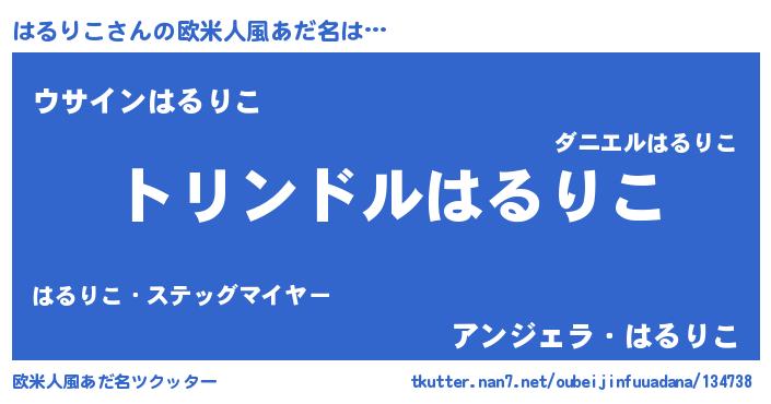 | 男性向けラノベタイトル風あだ名 | 『はるりこ~年齢イコール彼女いない歴の魔法使い~』 |