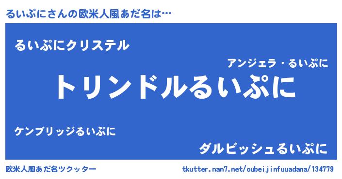 | 意味不明あだ名 | 『なめこ科るいぷに属』『自称るいぷに』 |