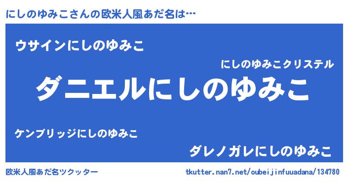 | ポケモン風あだ名 | 『ニックウザ』『ヒニシノユミコ』 |