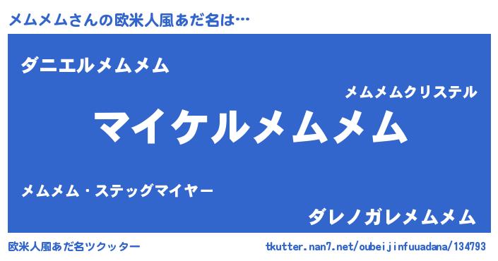 | 女子向けラノベタイトル風あだ名 | 『メムメム姫と円卓の騎士』 |