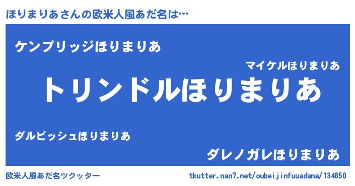 | 男性向けラノベタイトル風あだ名 | 『ほりまりあ~年齢イコール彼女いない歴の魔法使い~』 |