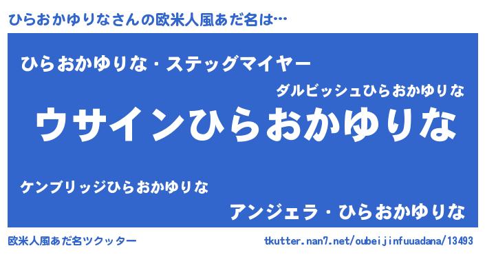 | 女子向けラノベタイトル風あだ名 | 『ひらおかゆりなは平凡を望む』 |