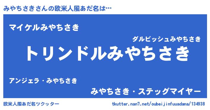 | 男性向けラノベタイトル風あだ名 | 『転生したらみやちさきだった件』 |
