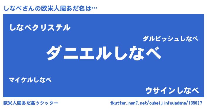 | ヒーロー風カッコイイあだ名 | 『愛の使者しなべ』『ウルトラしなべマン』 |
