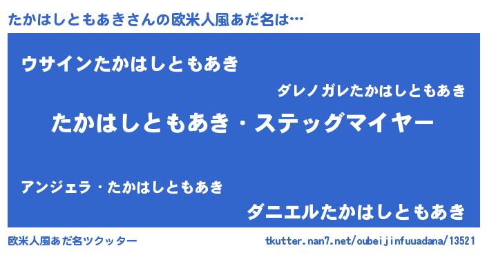 | 男性向けラノベタイトル風あだ名 | 『冴えないたかはしともあきの育てかた』 |
