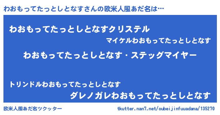 | ヒーロー風カッコイイあだ名 | 『ウルトラわおもってたっとしとなすマン』 |