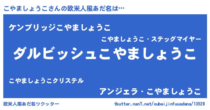 | 女子向けラノベタイトル風あだ名 | 『こやましょうこの契約王妃』 |