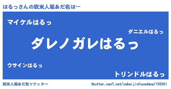 | 男性向けラノベタイトル風あだ名 | 『この素晴らしい世界にはるっを!』 |