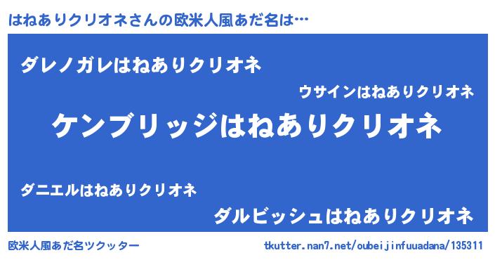 | 男性向けラノベタイトル風あだ名 | 『Re:はねありクリオネから始める異世界生活』 |