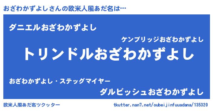 | 男性向けラノベタイトル風あだ名 | 『おざわかずよし~年齢イコール彼女いない歴の魔法使い~』 |