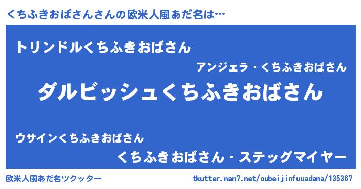 | ヒーロー風カッコイイあだ名 | 『ネオクチフキオバサン』『黄金騎士クチ』 |