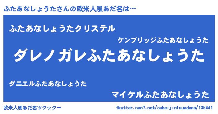 | 意味不明あだ名 | 『住所不定無職ふたあなしょうた(86歳)』 |