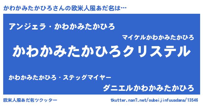 | 男性向けラノベタイトル風あだ名 | 『やはりかわかみたかひろの青春ラブコメはまちがっている 』 |