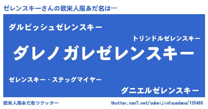 | 男性向けラノベタイトル風あだ名 | 『この素晴らしい世界にゼレンスキーを!』 |