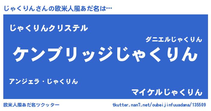 | 男性向けラノベタイトル風あだ名 | 『Re:じゃくりんから始める異世界生活』 |