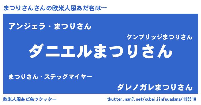| 男性向けラノベタイトル風あだ名 | 『おまえをオタクにしてやるから、俺をまつりさんにしてくれ! 』 |